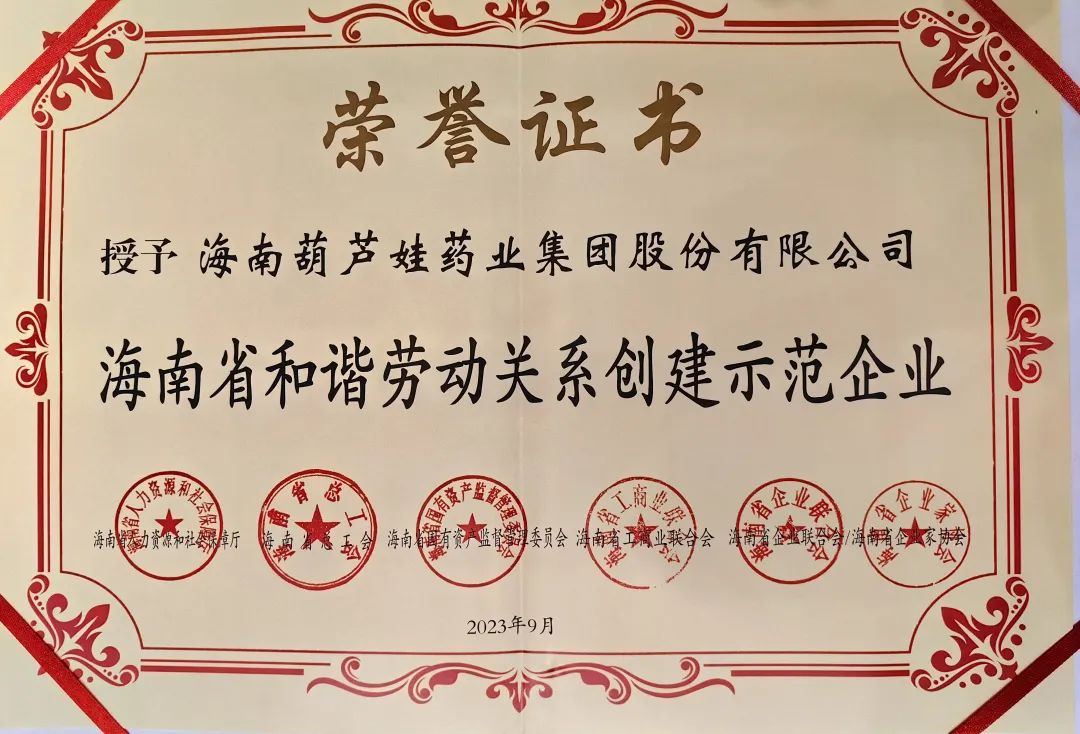 k1体育药业集团获评“海南省和谐劳动关系创建示范企业”
